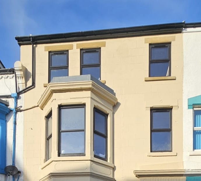 Essentially a new roof across the entire building. Over 25 new windows replaced/installed. Gutting and internal re-configuration across all 3 floors. Oh, and we made a new front door! So, a bit more than a light-touch refurb…